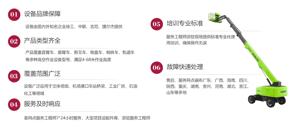 公司在發(fā)展歷程中堅(jiān)定實(shí)行大客戶戰(zhàn)略,致力于以優(yōu)質(zhì)的服務(wù)打造公司的品牌和核心競(jìng)爭(zhēng)力,現(xiàn)已在廣東、廣西、海南、四川、陜西、湖南、重慶、河南、湖北、貴州等多地建立了完善的售后服務(wù)網(wǎng)點(diǎn),24小時(shí)為客戶排憂解難。今后我們將結(jié)合市場(chǎng)需求,不斷創(chuàng)新業(yè)務(wù)模式、優(yōu)化設(shè)備結(jié)構(gòu)、加強(qiáng)運(yùn)營(yíng)管理、擴(kuò)大服務(wù)網(wǎng)點(diǎn)、提升服務(wù)水平,形成以設(shè)備租賃、銷售、二手設(shè)備交易等全方位一站式的全面服務(wù)體系,用高標(biāo)準(zhǔn)高質(zhì)量的服務(wù)讓客戶在和公司合作的過(guò)程中實(shí)實(shí)在在感受到省心、省力、省錢的體驗(yàn),在客戶心目中樹(shù)立“家鋒”的品牌形象。